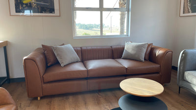 Crafted from rich full-grain leather, this couch was hand-stitched for a refined, timeless finish. We softened the structure slightly to blend masculine energy with everyday comfort.