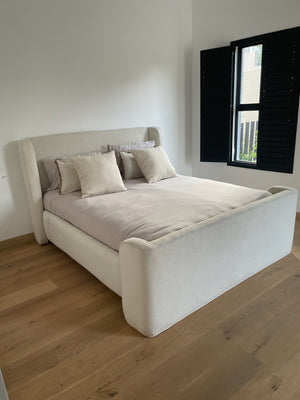 Designed for a calm retreat, this bed’s clean lines and soft tones were inspired by mordern minimalism. Framed in pine and layered in thick padding, it's built for both comfort and longevity.